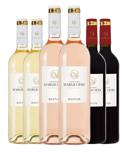 La Cuvée Bastide est l’emblématique cuvée du domaine Château Margillière, un reflet parfait des traditions et du terroir de la Provence. Ce trio de vins réunit avec finesse la fraîcheur du rosé gourmand, la délicatesse fruitée du blanc, et la puissance épicée du rouge.